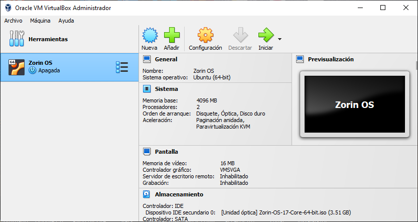 Preparar VM Zorin OS 17 en VirtualBox