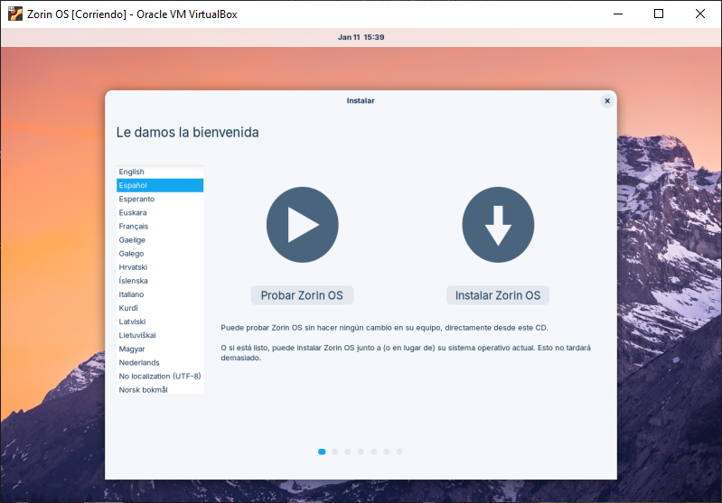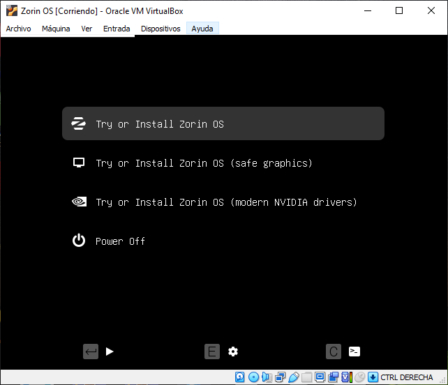 Ahora que ya tenemos listo la VM continuamos con el proceso de Instalacion del Zorin OS 17