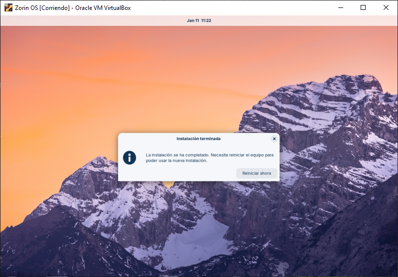 Una vez fianlizado te va a pedir reiniciar el equipo, en el cual tambien vas a sacar el CD o el USB booteable.